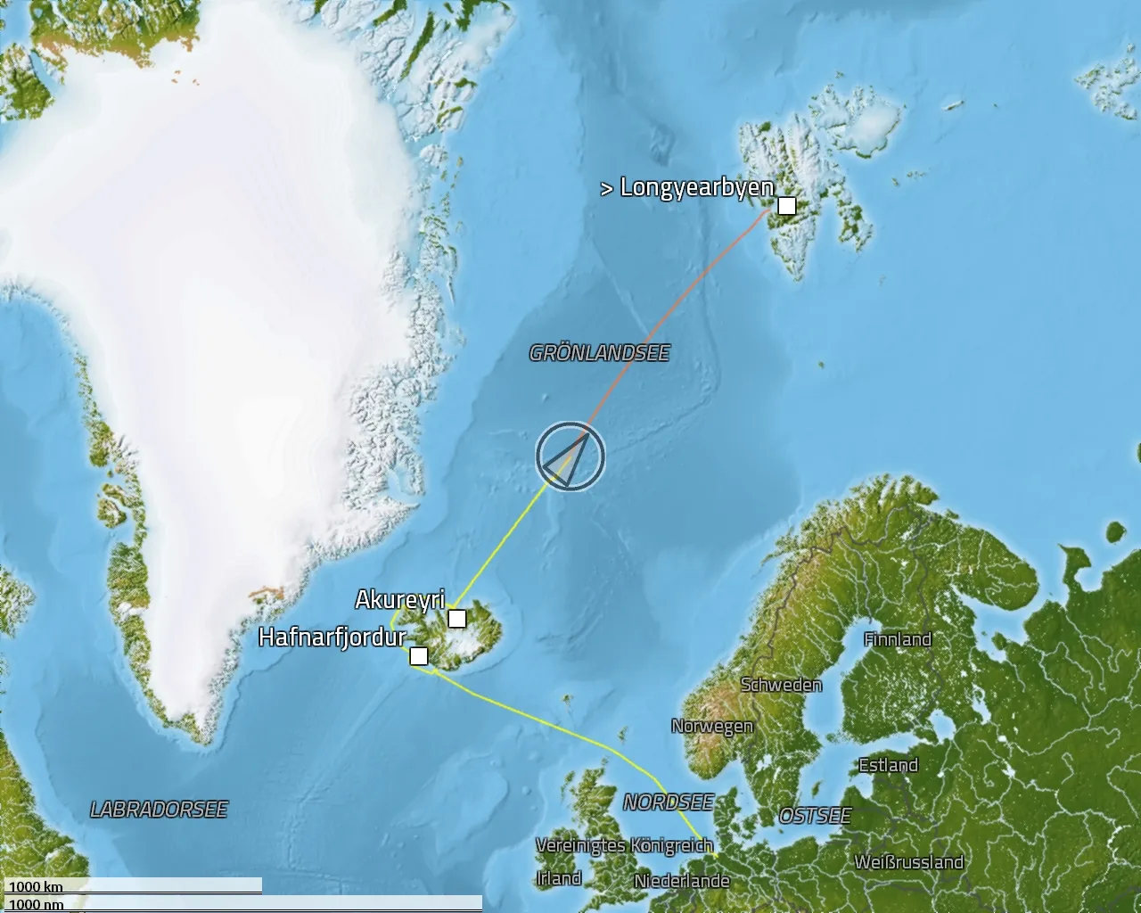 Zurückgelegte Distanz: 2040 sm