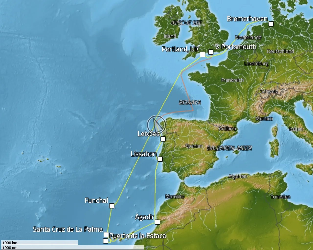 Zurückgelegte Distanz: 3551 sm