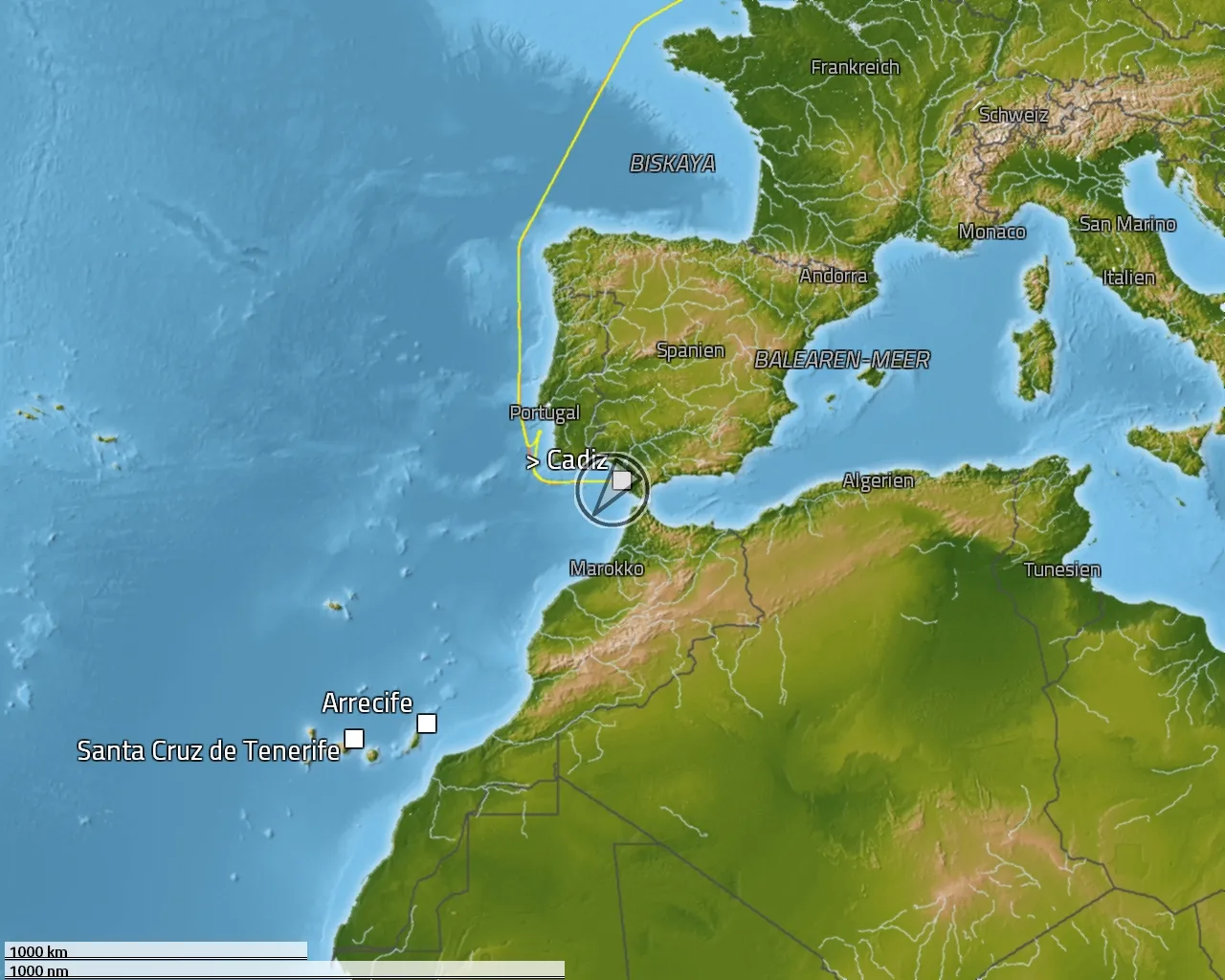 Zurückgelegte Distanz: 1728 sm