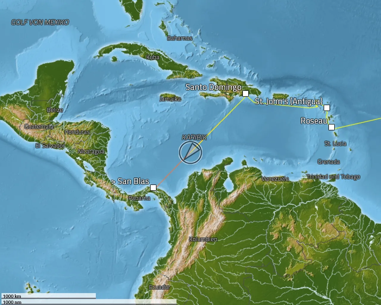 Zurückgelegte Distanz: 6244 sm
