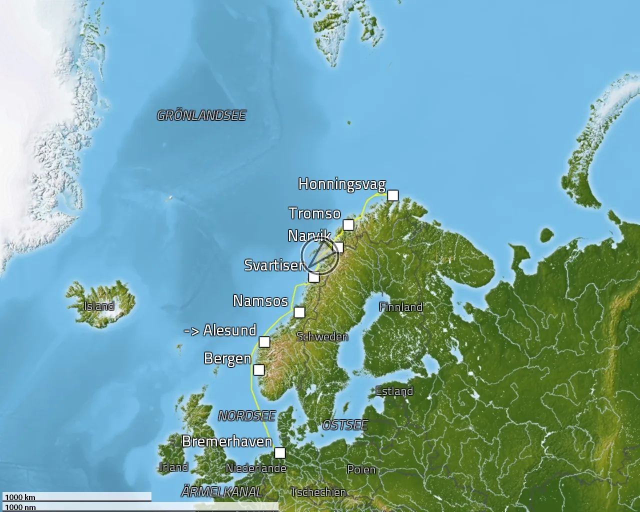 Zurückgelegte Distanz: 1906 sm
