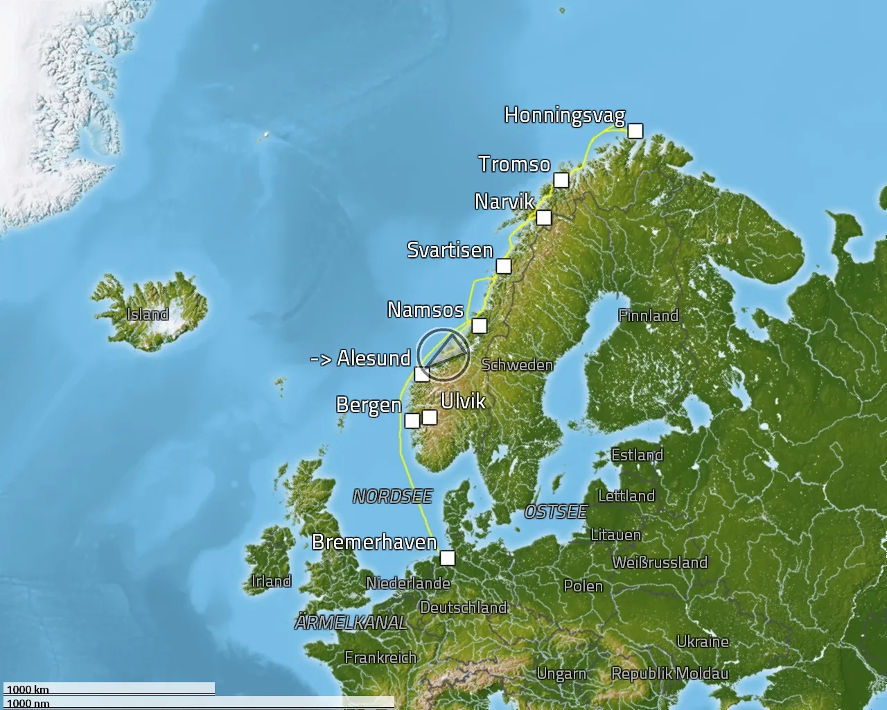 Las Palmas - Puerto del Rosario - Arrecife - Funchal - Tanger - Málaga - Ferrol - Honfleur - Hamburg