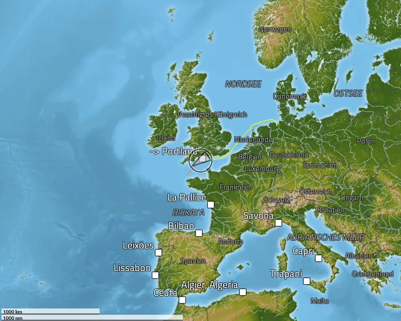 Zurückgelegte Distanz: 526 sm