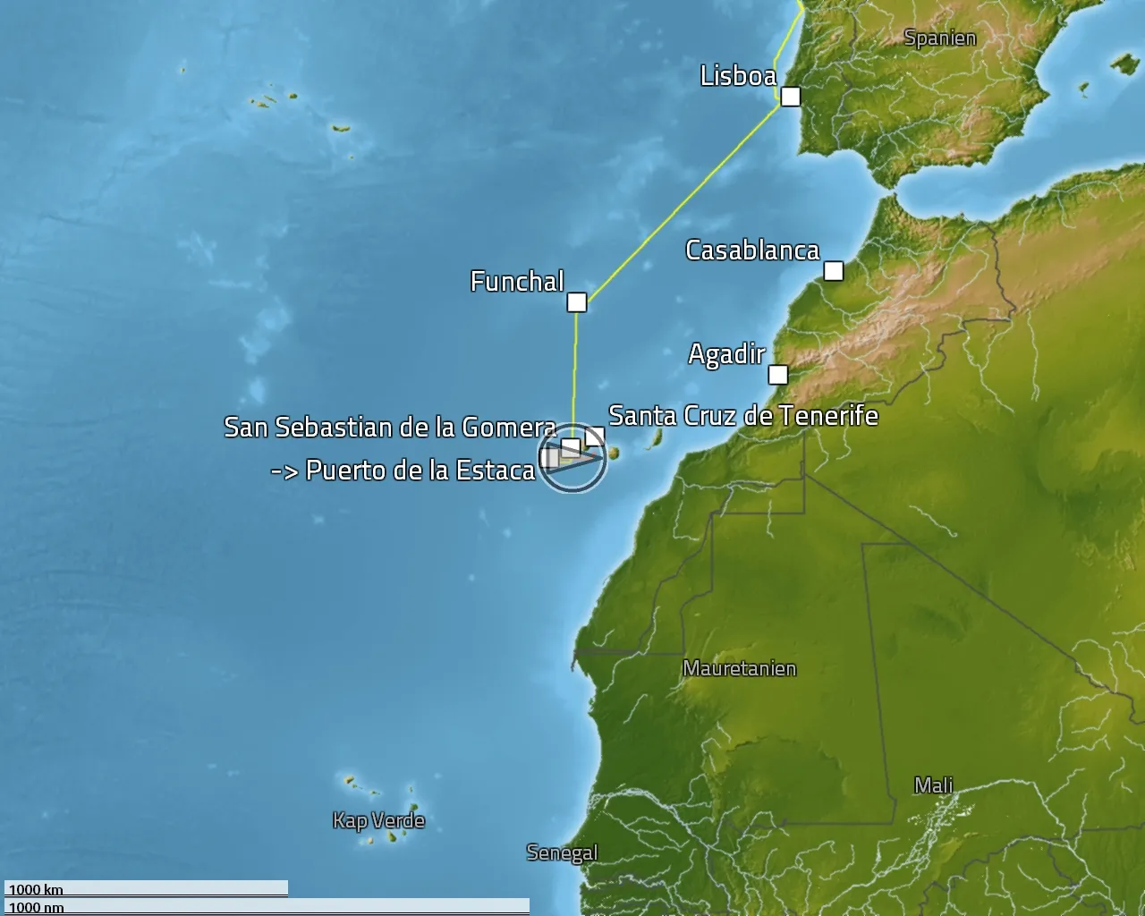 Zurückgelegte Distanz: 2311 sm