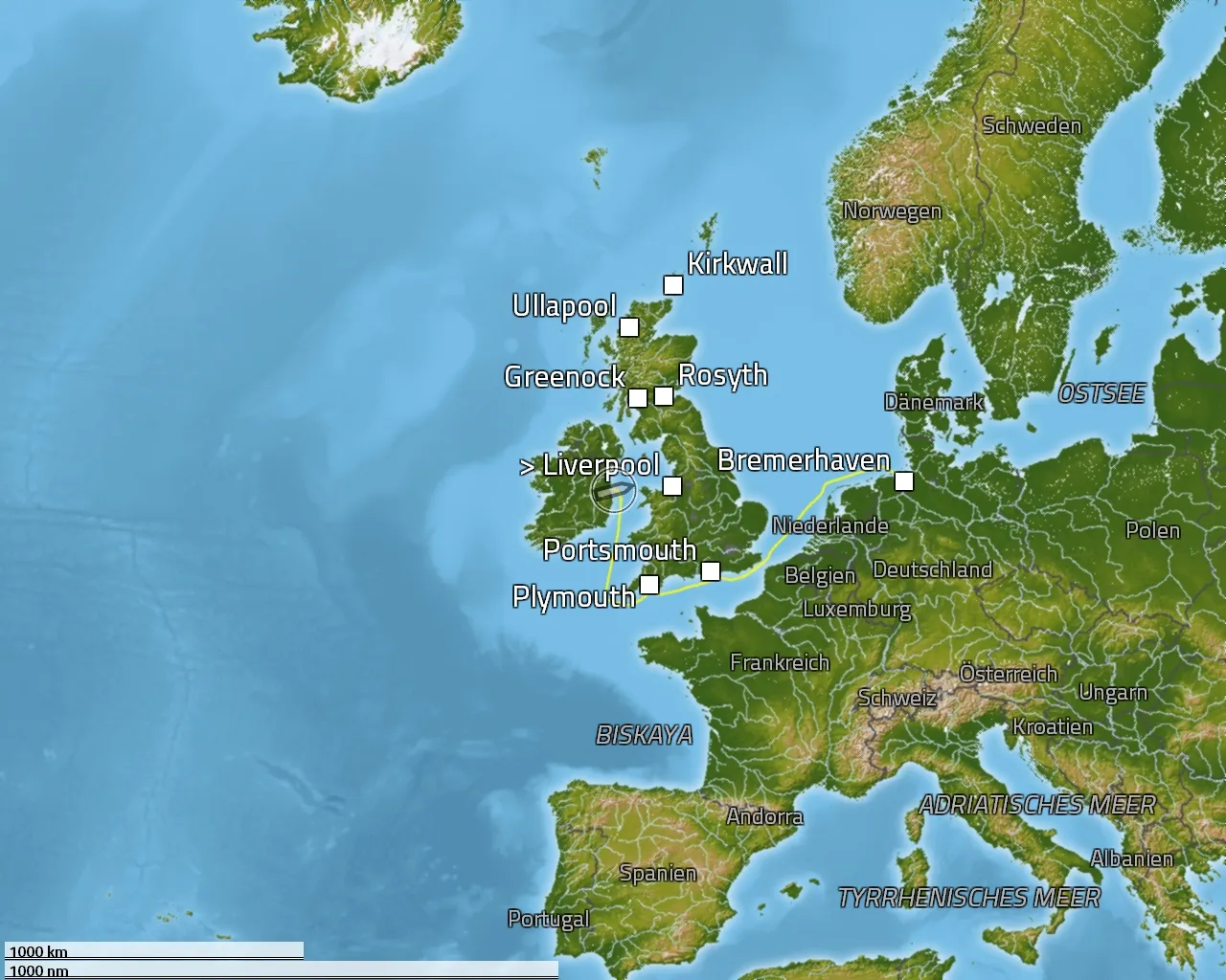Kiel - Binz (Rügen) - Rønne (Bornholm) - Kopenhagen - Skagen - Flekkefjord - Bremerhaven