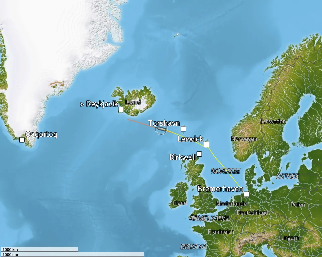Zurückgelegte Distanz: 884 sm
