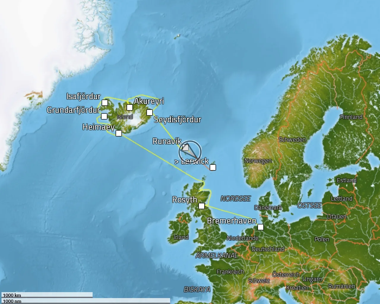 Zurückgelegte Distanz: 2534 sm