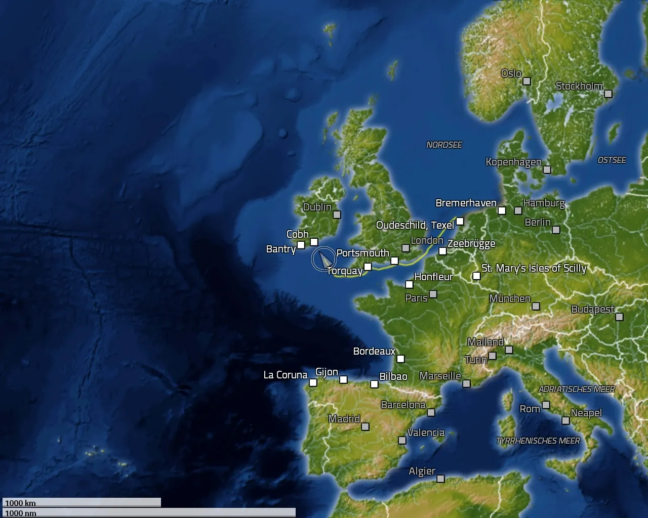 Fahrt: 10.5 Knoten (19.5 km/h)