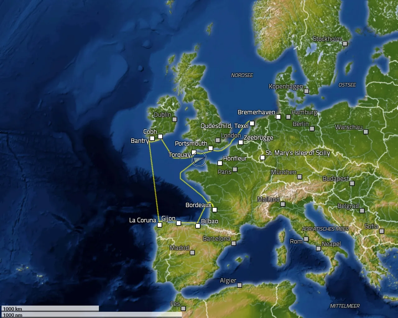 Zurückgelegte Distanz: 2254 sm