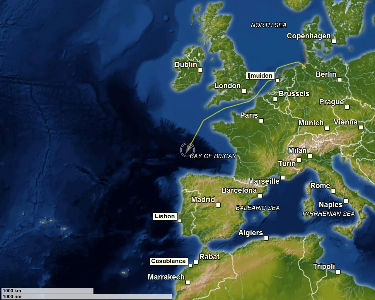 Fahrt: 9.5 Knoten (17.6 km/h)