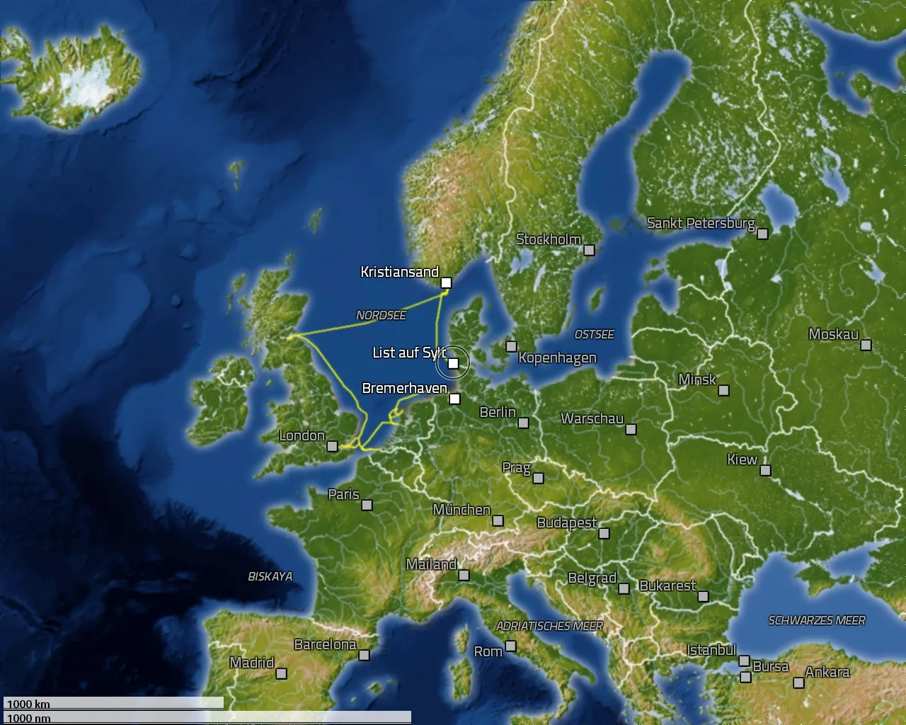 Zurückgelegte Distanz: 1732 sm
